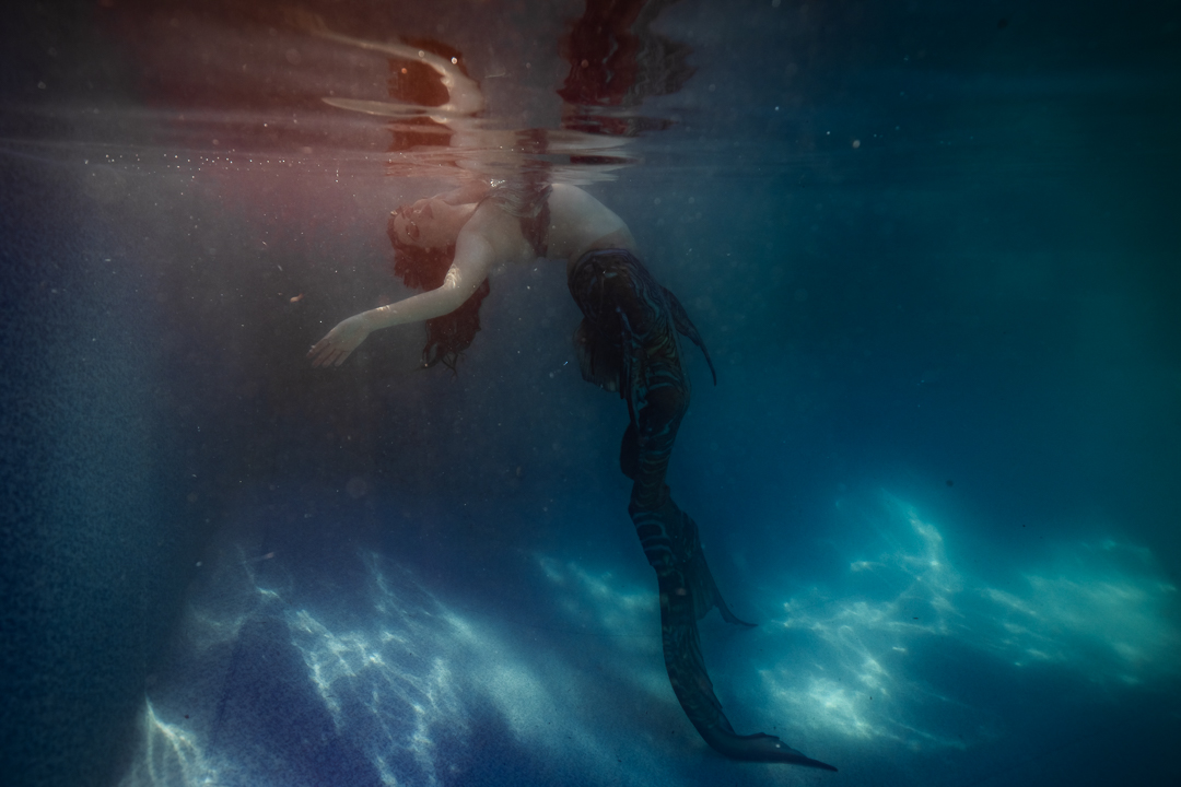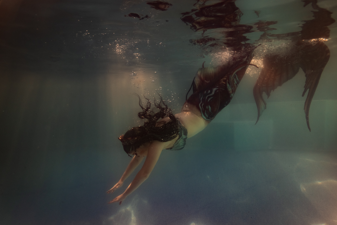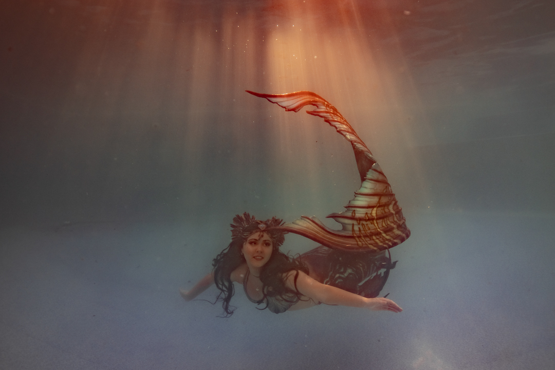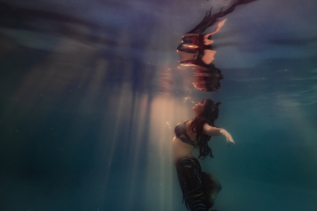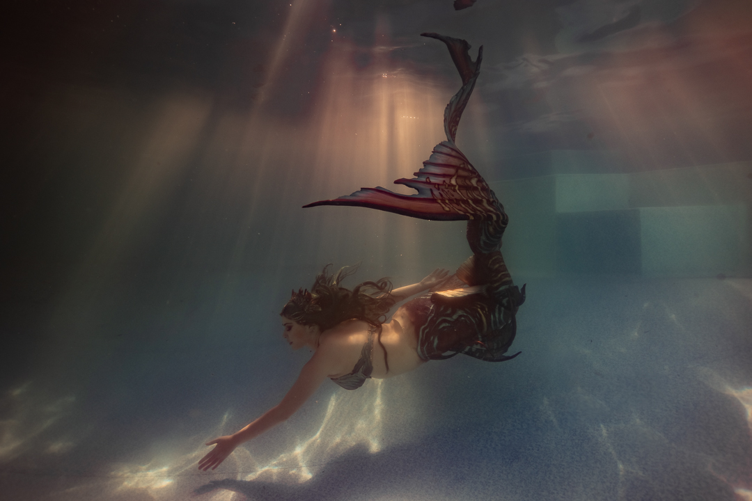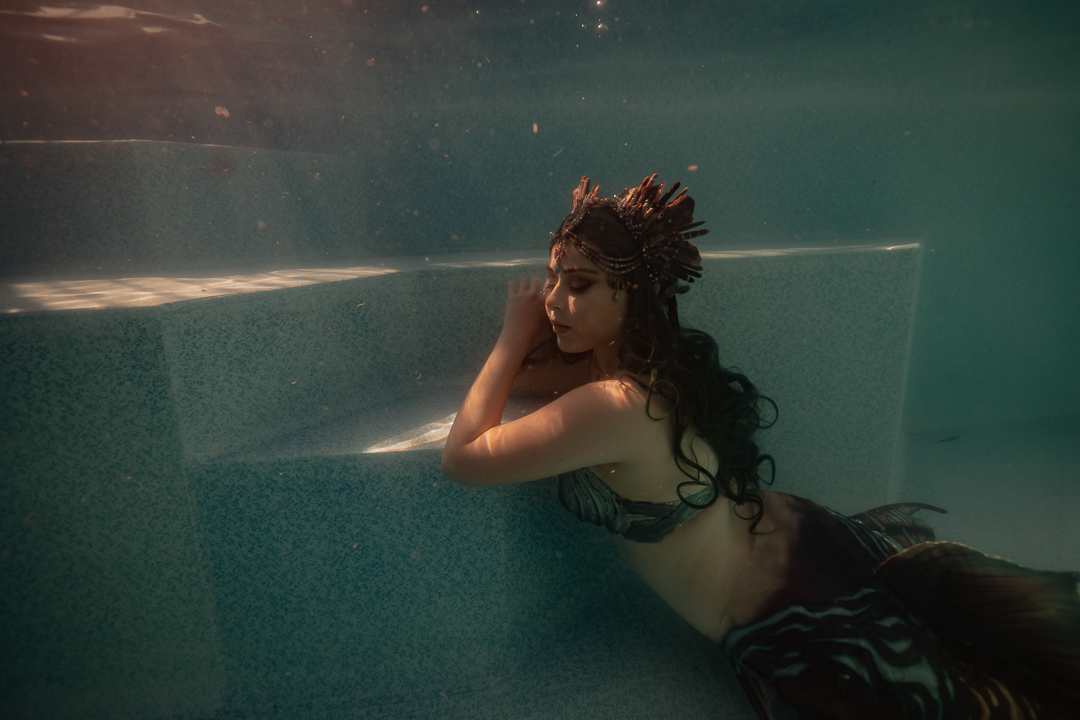 For starters it’s quite an achievement in itself to take a photo under the water and I didn’t want to overwhelm my students with a whole stack of information and then need to direct someone on top of it. I wanted an underwater model who could move naturally well! So performing mermaid Madeleine was the perfect candidate for the job!