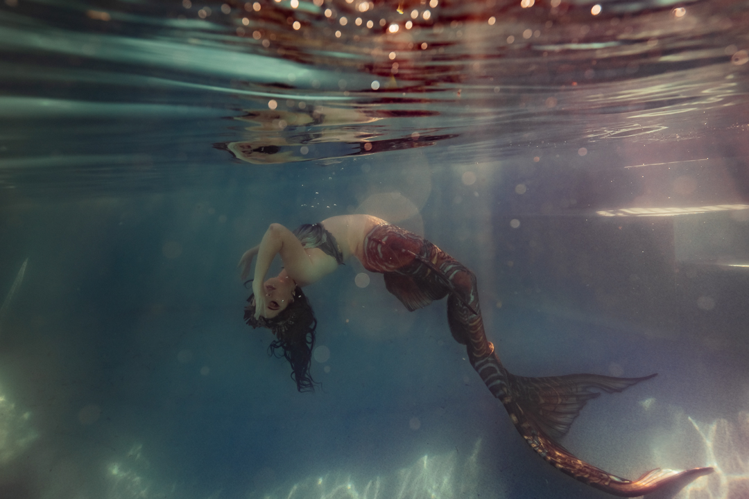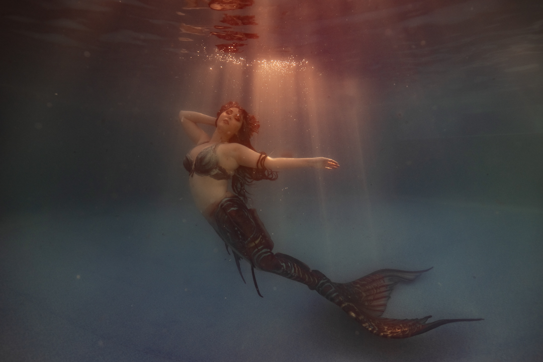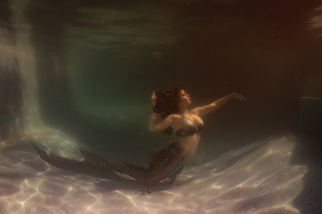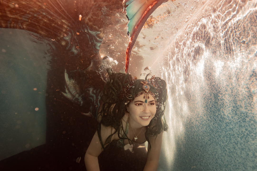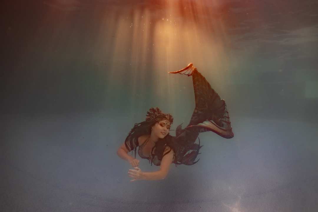 For starters it’s quite an achievement in itself to take a photo under the water and I didn’t want to overwhelm my students with a whole stack of information and then need to direct someone on top of it. I wanted an underwater model who could move naturally well! So performing mermaid Madeleine was the perfect candidate for the job!