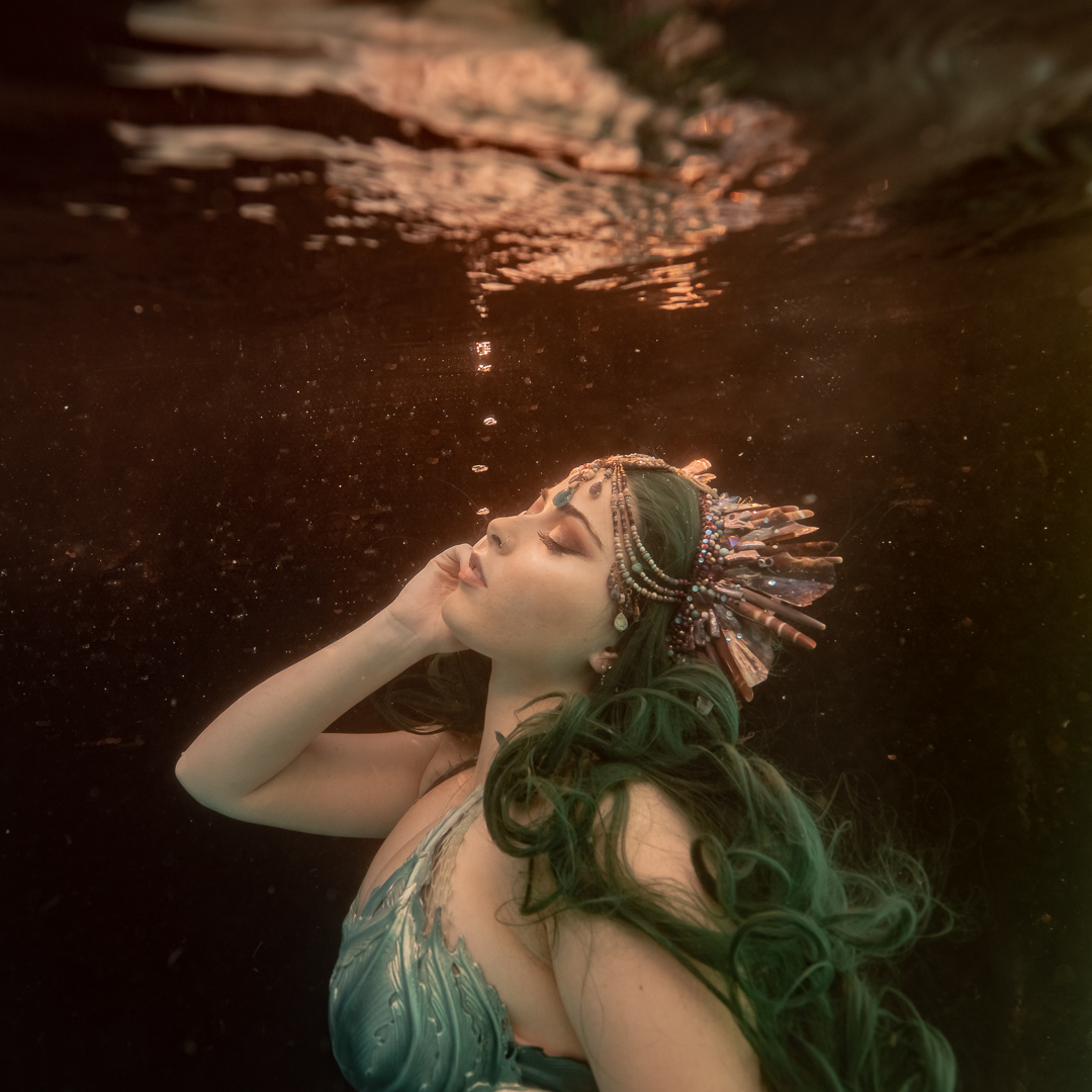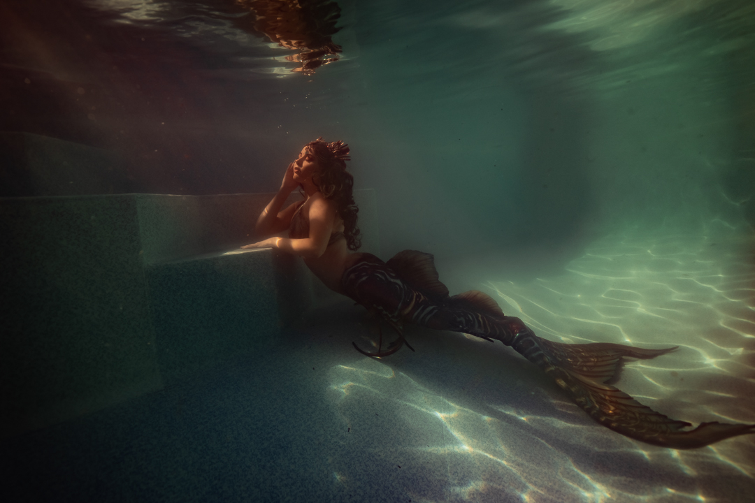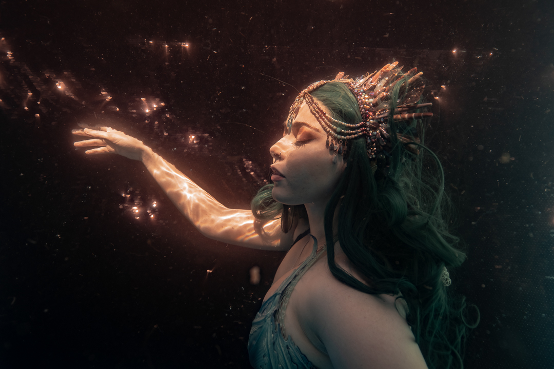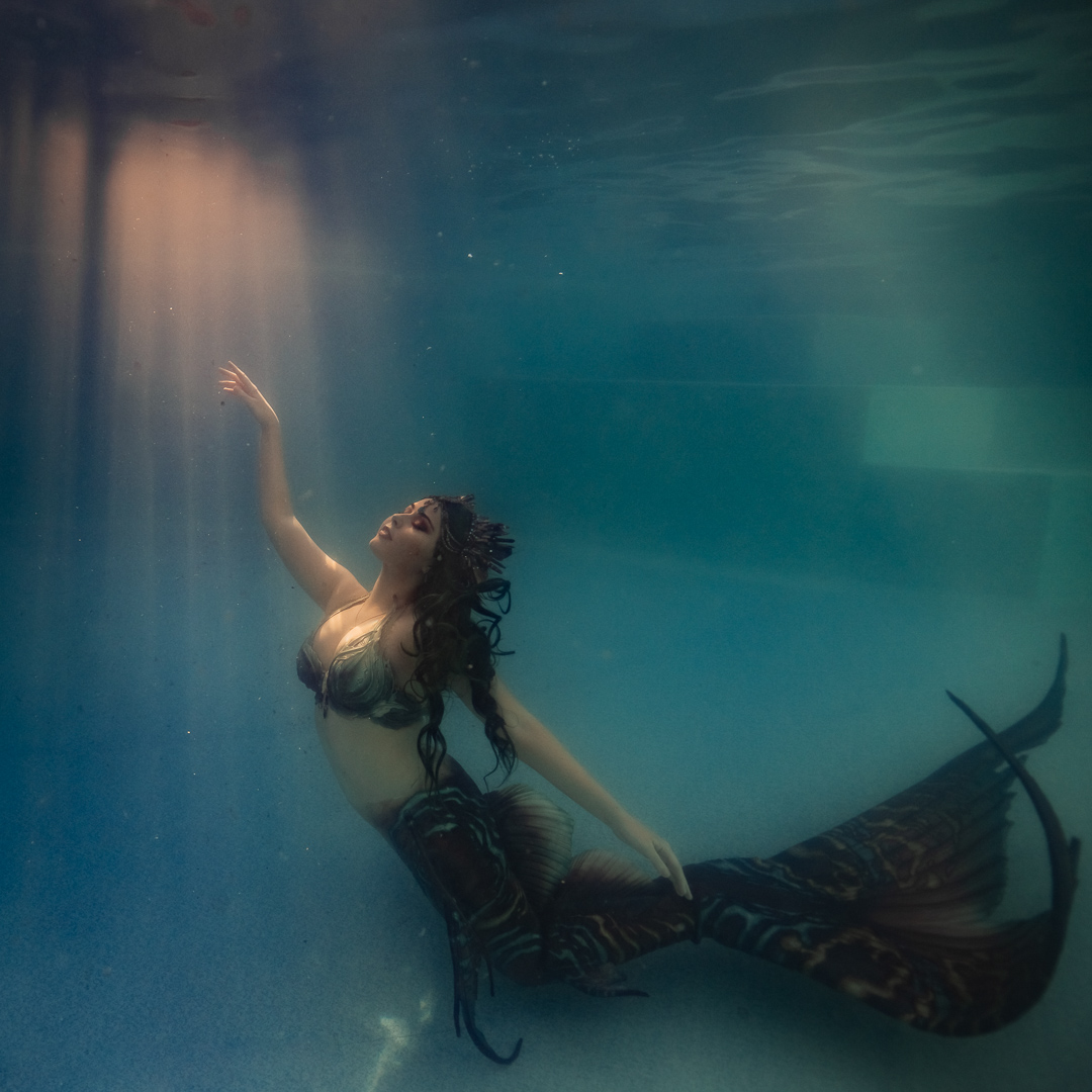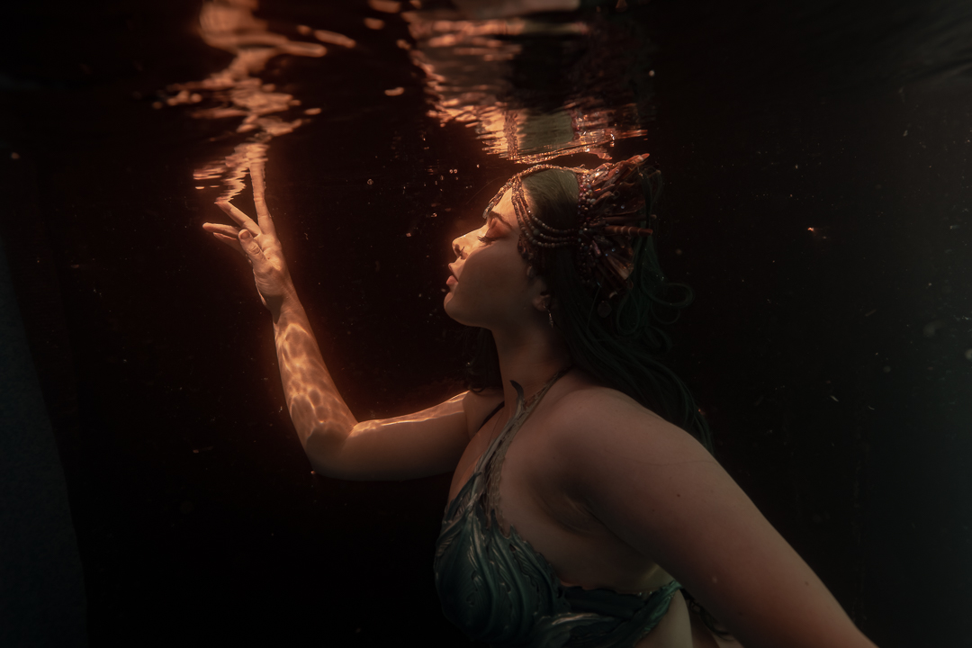 For starters it’s quite an achievement in itself to take a photo under the water and I didn’t want to overwhelm my students with a whole stack of information and then need to direct someone on top of it. I wanted an underwater model who could move naturally well! So performing mermaid Madeleine was the perfect candidate for the job!